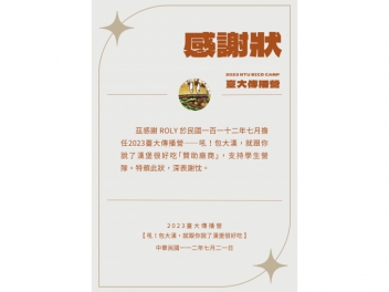 ROLY大力支持!臺灣大學傳播營感謝贊助