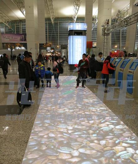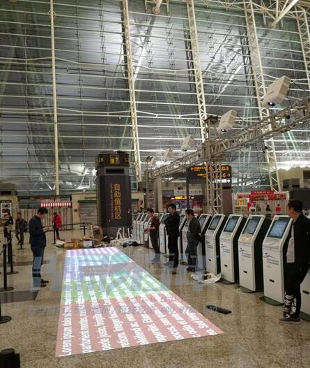 龐大的客流量對于機(jī)場的服務(wù)提出了種種新的考驗,其中之一就是,盡管機(jī)場提供有多套自動值機(jī)設(shè)備,以方便乘客自主辦理相關(guān)業(yè)務(wù),縮短候機(jī)時間。但在旅客登機(jī)高峰時段,過于集中的客流仍會造成旅客大面積、長時間等候的問題,進(jìn)而造成緊張焦慮情緒,不僅極大地影響了乘客的乘機(jī)體驗,更存在乘客情緒失控發(fā)生治安案件的風(fēng)險,對機(jī)場安全運轉(zhuǎn)造成隱患。為此,白云機(jī)場引進(jìn)了先進(jìn)的互動投影系統(tǒng),為這一問題的解決提供了一套思路。