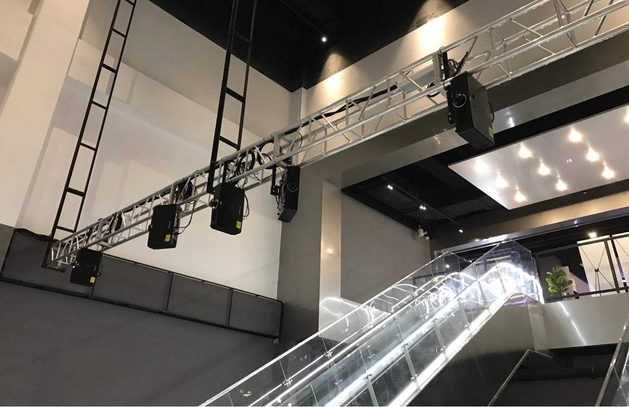 該系列投影機搭配了0.62:1鏡頭,采用采用90度垂直安裝,單臺畫面覆蓋8m高,5m寬;總畫面覆蓋8m高,20m寬的巨型背景墻,通過定制的硬融服務(wù)器系統(tǒng),實現(xiàn)多媒體+多功能的巨幕背景墻效果,創(chuàng)新采用激光投影取代傳統(tǒng)裝修方案,也貼合了SFC上影影城上海金橋店揭幕式“新影主義,蓄勢將映”的主題。