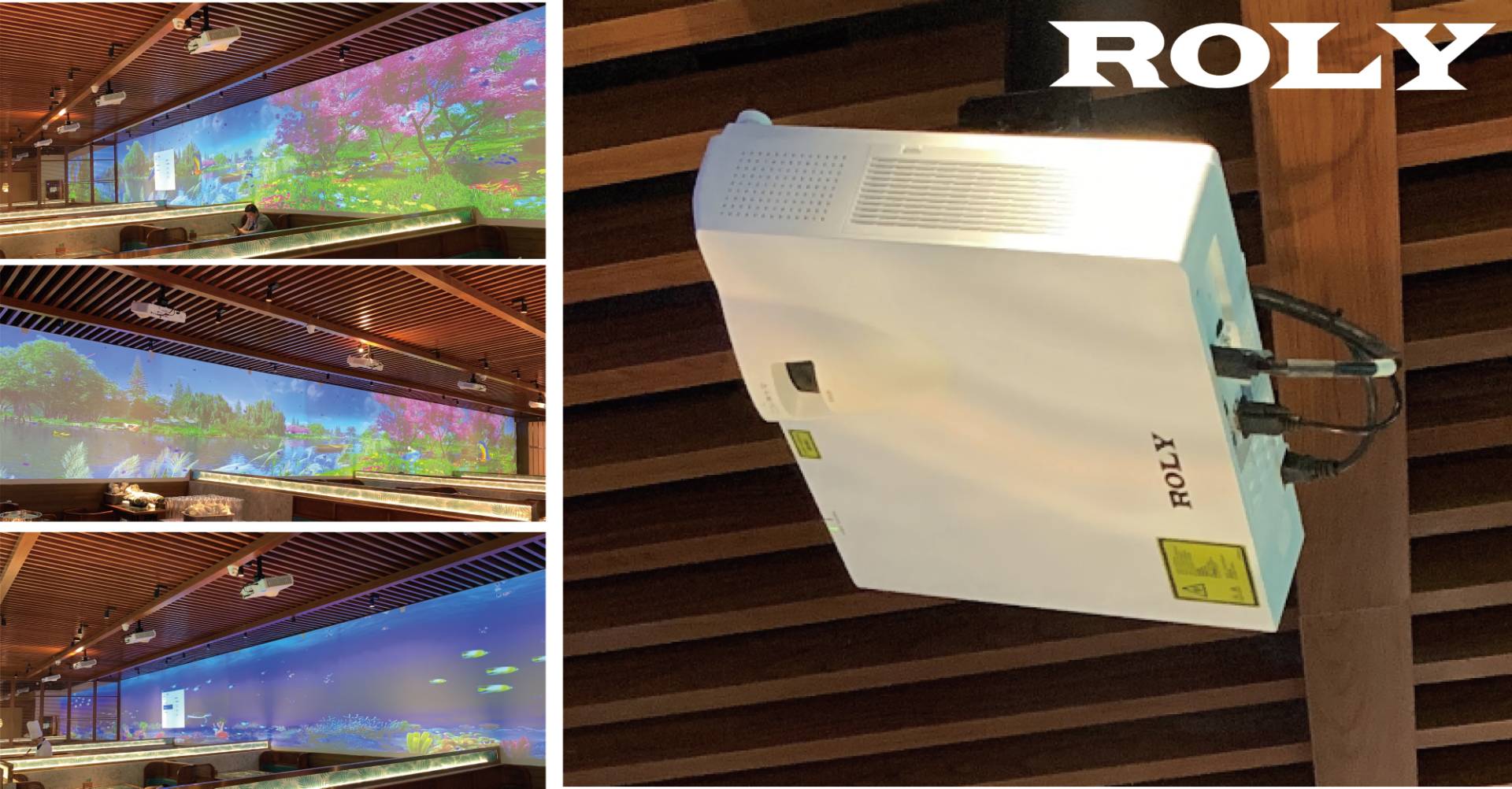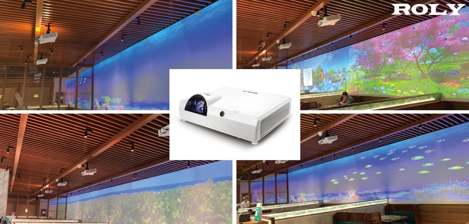 四季椰林光影餐廳采用了ROLY品牌的8臺(tái)S系列激光短焦投影機(jī)完美拼接融合,具有更高的色彩飽和度和更廣的色域覆蓋,能夠呈現(xiàn)出更加鮮艷、逼真的畫質(zhì)效果, 并搭載先進(jìn)的3LCD投影技術(shù)及ROLY自帶0.46投射比短焦鏡頭,亮度適中,投影的通透性強(qiáng),投影機(jī)達(dá)到Rec.709色彩標(biāo)準(zhǔn),真實(shí)還原人眼所見的大自然色彩,同時(shí)支持向上解碼兼容4K畫質(zhì),呈現(xiàn)更加生動(dòng)細(xì)膩逼真的視覺效果,海底世界、沙灘風(fēng)景一一再現(xiàn)眼前,仿佛身臨其境。