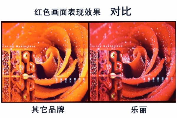紅色:傳統(tǒng)的LCD與DLP實(shí)際效果,整體紅色部分偏橘色,色彩偏差嚴(yán)重。ROLY(樂(lè)爾麗)激光投影機(jī)色彩鮮紅,明暗部分區(qū)分良好,色彩還原度高。