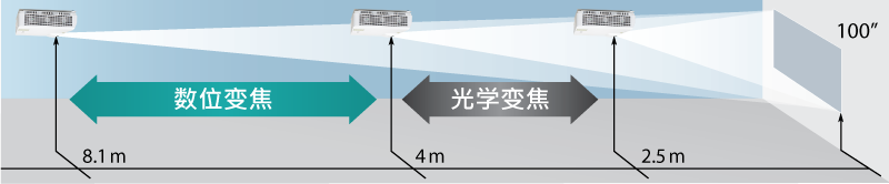 搭載的數(shù)字變焦功能,等比例縮小顯示畫面,使超出光學(xué)變焦范圍的畫面符合您的屏幕,減少了您需要重新安裝投影機(jī)支架的需求,節(jié)省時(shí)間、金錢和麻煩。