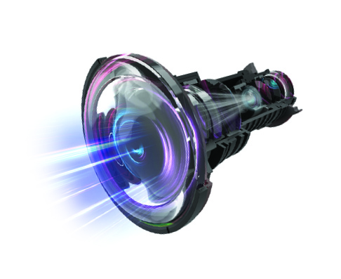 針對3LCD投影機(jī),獨(dú)家開發(fā)0.5短焦鏡頭,具備承受6300流明高亮度,匹配WUXGA高分辨率,通光率高,光衰低于10%,最高投影尺寸可達(dá)400寸。