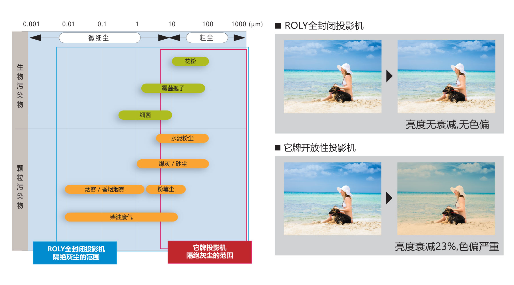 *一般濾網(wǎng)式投影機(jī)只能隔絕至10微米大小的灰塵