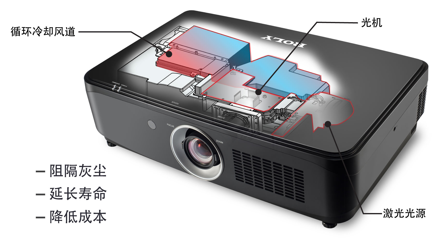 3LCD投影機(jī)全球首創(chuàng)從光源,光機(jī)到循環(huán)冷卻風(fēng)道皆采用全封閉的結(jié)構(gòu)設(shè)計(jì),有效隔絕灰塵侵入,提高畫面質(zhì)量和穩(wěn)定性,有效延長投影機(jī)壽命。